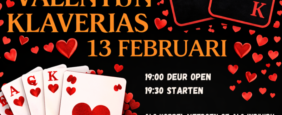 ❤️🃏 Valentijn Klaverjas bij KRAS! 🃏❤️ Op 13 februari spelen we een extra gezellige Valentijnseditie van klaverjas. Kom samen als koppel óf gewoon solo – ...